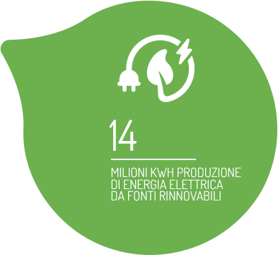13.889.140 kWh produzione di energia elettrica da fonti rinnovabili Energia rinnovabile prodotta dalle società del consorzio con la partecipazione in altre società o investimenti diretti in impianti di energia rinnovabile.
